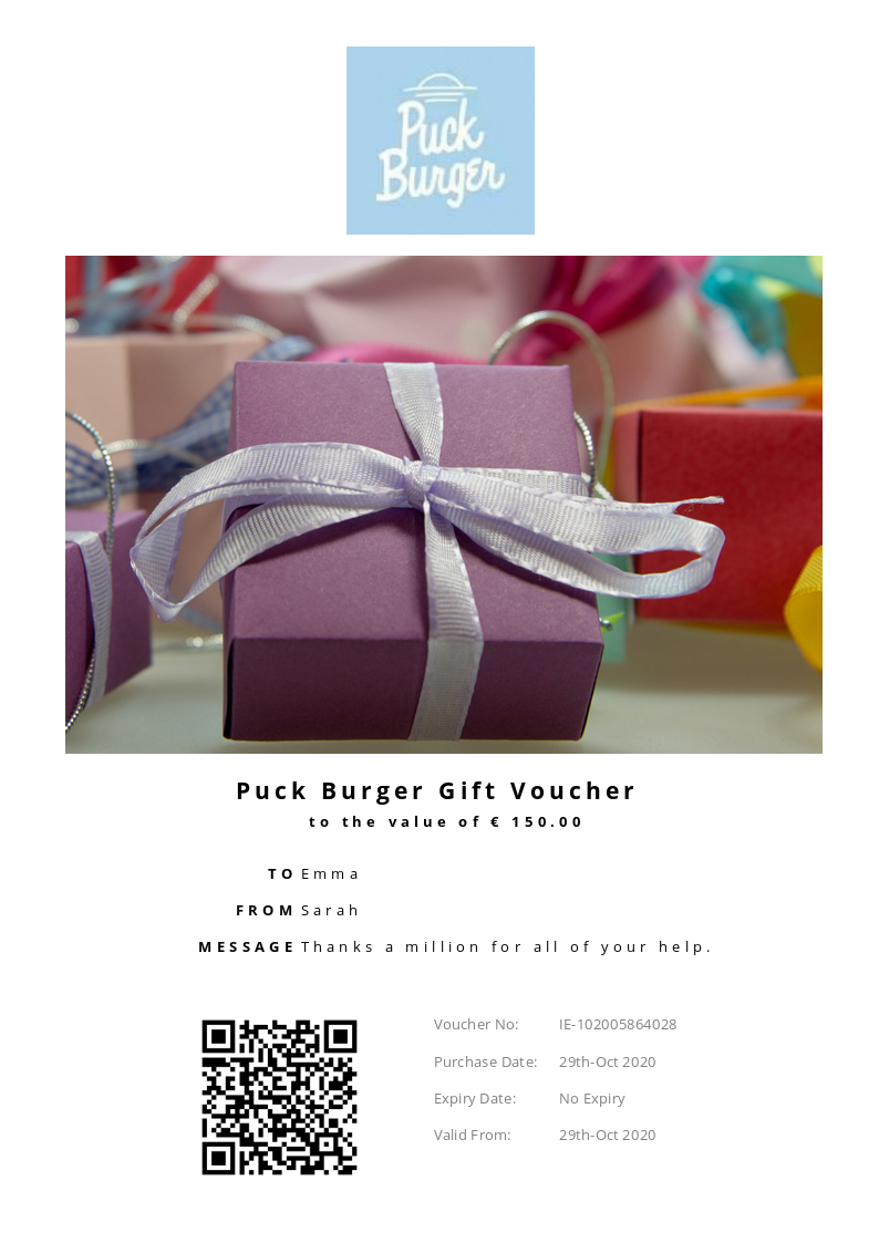 Puck Burger allows you to purchase instantly printable gift vouchers, special offers and tickets using the Voucher Connect platform.
